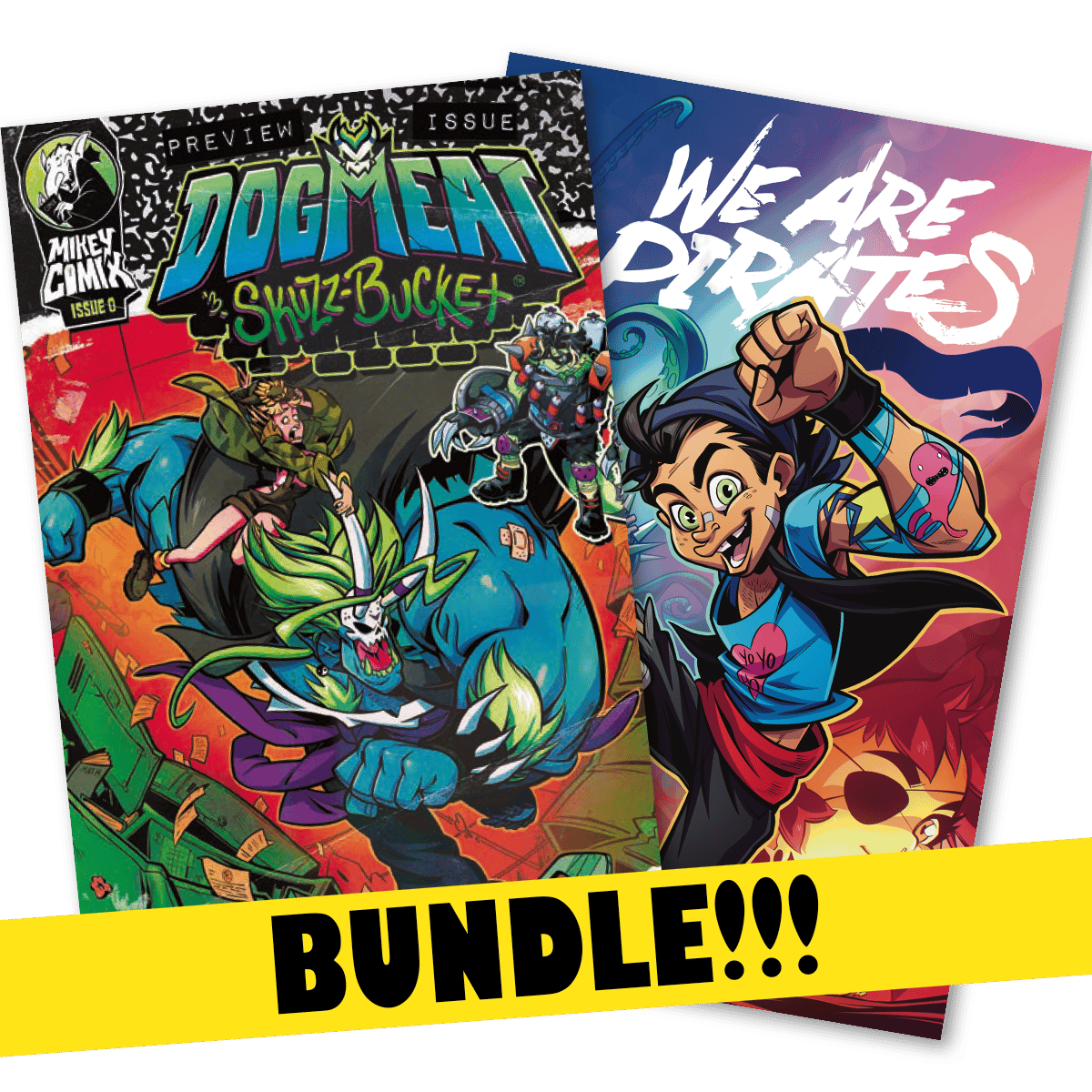 Get 4 dollars off the total price when you bundle DogMeat preview issue and the We Are Pirates 10th Anniversary cover issue! 2 comics, 1 great price.